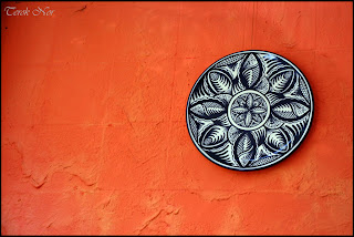 店內的裝潢則是多變而繽紛,在店面前方的玻璃屋區域是以鮮橘色的牆面搭配半透明玻璃磚為主,其上懸掛著彩繪有美麗幾何圖形的盤子,坐在這區域空間的客戶們仿如置身熱情地中海的閑逸氛圍。