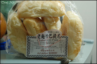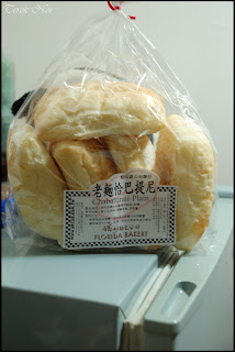 要買什麼樣的麵包呢?原本是要買土司、大蒜之類的,後來想想那些放不進背包裡,在颱風大雨中騎腳踏車一定會把麵包打濕,不如買已經包裝好,不會有水滲入的”老麵恰巴提尼”。