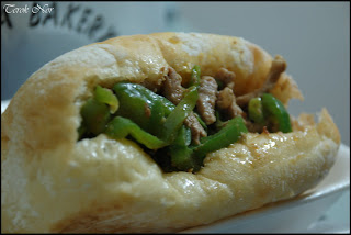 先包入起司,在放進青椒肉片,一個老麵恰巴提尼可以塞進