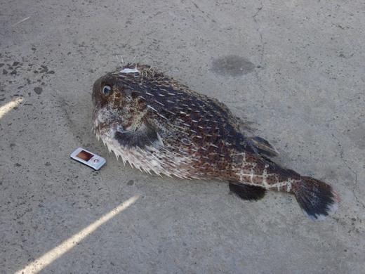 註:【刺河豚】河豚種類超多,含劇毒,料理不當,易中毒。刺河豚,不含劇毒,昔日澎湖商人多利用其皮作為燈飾,這幾年來漁民把刺河豚皮上的刺拔除,水煮冰鎮,清脆爽口,成為餐廳出名的佳餚。