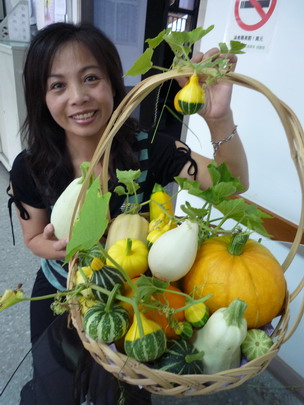 「牛奶的故鄉」栽種的各類觀賞小南瓜,最近已結了許多果實,鄉公所將裝在果籃裡的各種觀賞南瓜,當成擺飾,使辦公室生色不少。