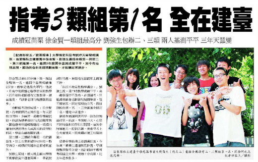 「放輕鬆考取好成績,」徐金賢說,指考前保持正常作息,每天留校自習時,多練習一遍數學模擬試題,他認為建臺提供的試題難度夠,讓他應考時能輕鬆應付。成績出爐後他想選填台大或政大的商學院科系,學習金融相關知識。