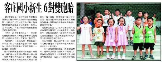 苗栗縣苑裡鎮客庄國小今年115名新生中有6對雙胞胎,全校共有16對,校方也好奇,為何雙胞胎比例這麼高?家長會長、地方人士「巧合啦」,老師們覺得教雙胞胎有另類的教學相長。