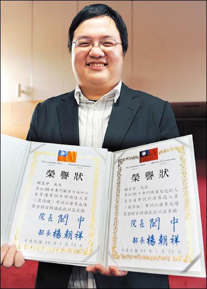 英文台北時報記者賴昱伸 參加外語導遊、領隊專技普考,榮登雙榜首。(記者廖振輝攝)