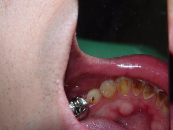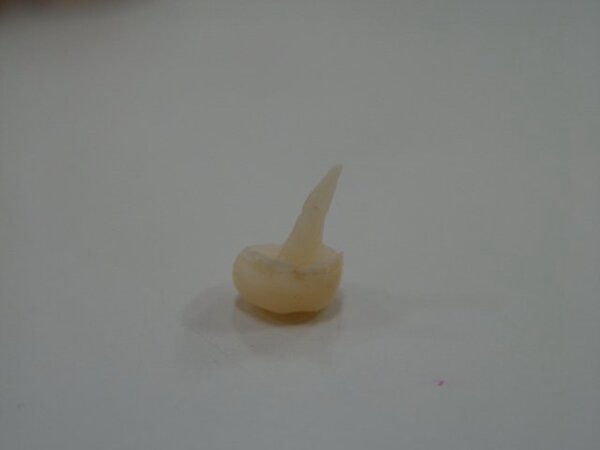 患者年約41,男性,牙齒咬破來就醫,經醫師檢查後發現此顆牙齒是抽過神經的,因此建議患者利用全瓷牙冠來修復,可以兼具美觀與耐用。