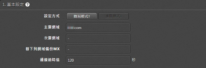 - 主要網域設定 在 [設定] - 基本設定 - 主要網域: 輸入你的郵件網域名如 yourdomain.com