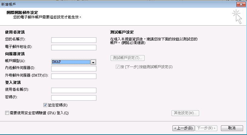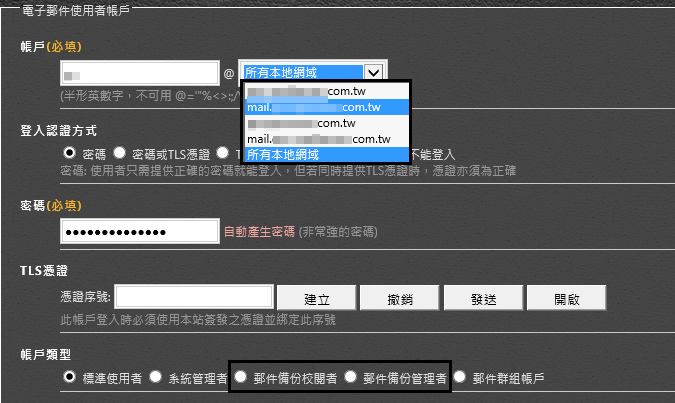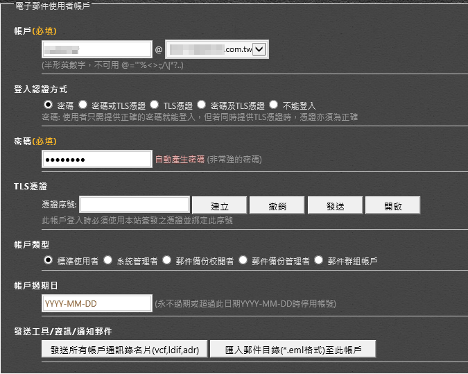 - 最後,將帳戶密碼提供給帳戶擁有人並指導他如何在郵件收發軟體中做設定以後,即可做收發郵件的動作。