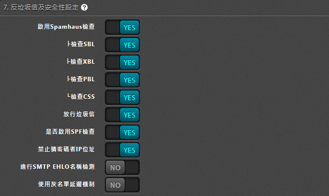 EVO 郵件伺服器透過 Spamhaus ZEN 的反垃圾信機制可過濾九成以上的垃圾信,將它們放到垃圾信的資料夾中,剩下的一成垃圾信可使用「SPF 檢查」,無須做任何複雜的設定,只需開啟或關閉,預設為開啟。 - 為郵件伺服器防毒軟體選擇與設定