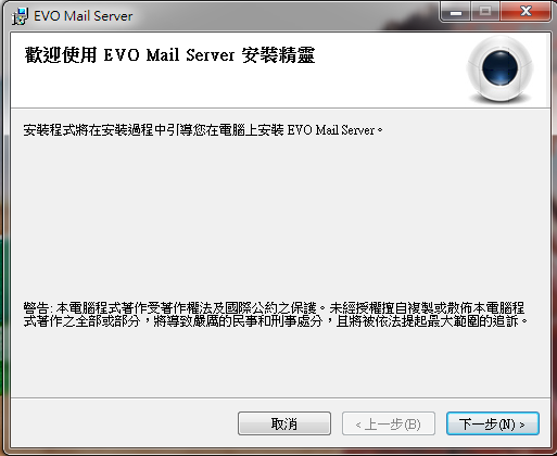 本教程以安裝 EVO 郵件伺服器軟體為範例 ,可以從EVO官網下載試用