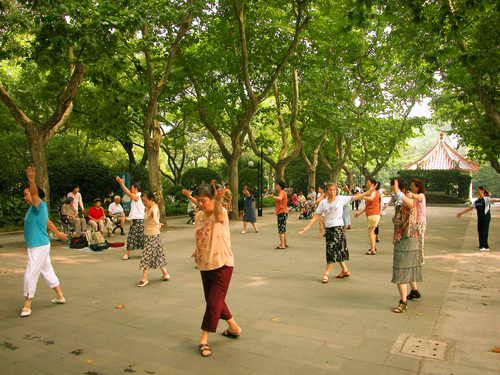 事實可能是, 我往旁一看的剎那間, 那群婦女的晨操運動也剛好做到"臉向左轉"的