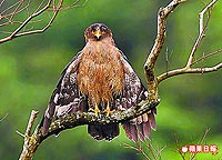 【摘要12.24.2009 蘋果】台北鳥會總幹事石瑞德表示,「蛇鵰」屬鷹科,俗名大冠鷲,是台灣普遍可見的留鳥,常見於中低海拔的闊葉林。牠們在天空盤旋常發出「忽、忽、忽溜、忽溜」鳴叫聲,山區看到會叫的鷹類大部分就是牠們。