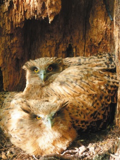 【摘要5.26.2010聯合報╱林順良/屏東縣】台灣最大的貓頭鷹黃魚鴞,行蹤一向難掌握,屏科大野生動物保育研究所最近找到一處巢穴,將記錄牠們神祕的成長過程。