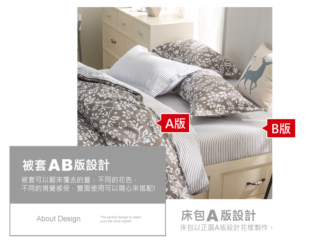 Pure One 北歐風台灣製- 雙人三件式床包組