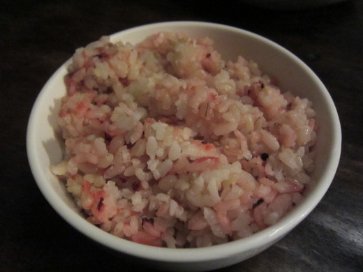 白飯中加入紅鞠,紅紅白白的飯粒間