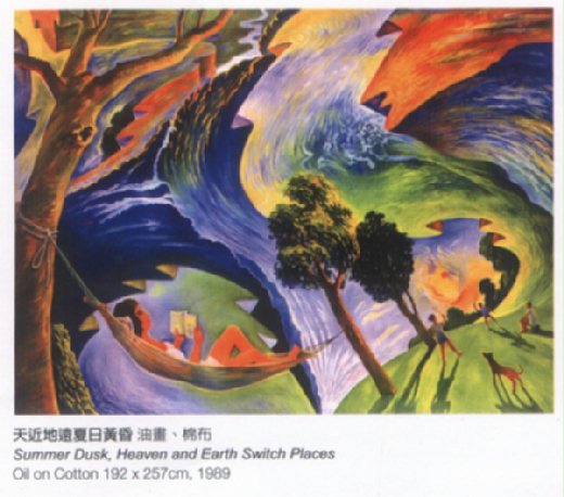 當時,我就被他的時空扭曲的多重平行線給感動,甚至,還不只一次走到那個畫前面。