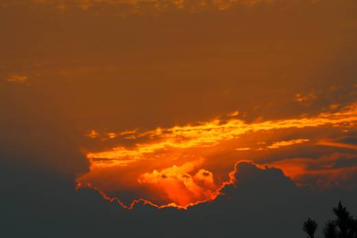 車到山頂,一下車就加緊腳步快速的往五指山頂衝,眼看東方的雲彩不停的變化,雲層如燃燒中的火山,太陽一點一點地露出臉,也不管鏡頭取得如何,外子趕緊地按下快門,希望將美景留下來和大家分享,瞬間一顆火頭已跳出雲端,為大地帶來光亮。