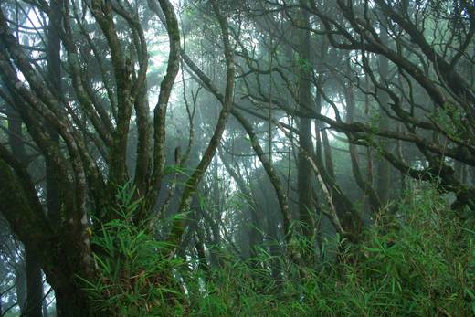 因為是原始林,並不是平日常走的步道,對於我這新手而言真是難以適應,既要注意頭上的樹枝,又要小心腳下的樹根;身邊不時還會出現有刺的植物,(笨笨的我是穿短袖的);途中有很多巨木也有很多傾倒的樹幹,從下鑽過樹太矮,從上爬過腳太短,真是狼狽極了。頭髮濕了又乾、乾了又濕,在山林裡走了五個多鐘頭,攻了兩個三角點(烏山是二等山哦!),從烏山頂下山時更是讓我心驚膽跳,落差五百公尺的下山法,讓我對於其他山友佩服的五體投地,下山時不但要手腳並用,還要倒著身體往下走,真是恐怖。