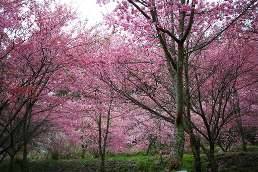 多數的遊客都只走到茶園步道或到觀魚臺,就不再往前走,因為遊客中心到觀魚臺大約有二公里,我和老公喜歡走路,所以一直走到誠莊才折返;種植在後半段的櫻[花樹是比較自由開放在山野中,不似遊客中心或茶園步道等處是密集栽種的。各有各的美,就看您喜歡哪一種囉!邀您一起來『瘋武陵』吧!