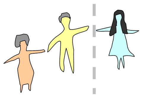 「暗戀桃花源」戲中有一段述說著一位老人因為40年前的戀情而在病床上鬱鬱寡歡,當護士放出40年前的定情歌時,那位初戀情人突然出現在老人面前,另一頭是現任妻子在嘮叨,兩極化的虛實呈現,讓人為之動然,當老人沈靜在40年前的虛幻情境中時,不時聽見現實生活中的妻子在替他難過,兩邊的情境都是如此的讓觀眾替他憂心,如果他選擇了初戀情人,就表示要與妻子天人永隔;如果他選擇了妻子,就會抱憾終身;但是站在觀眾的立場,兩個畫面同時出現,產生的除了時空錯亂,還多了濃濃的憂傷氣氛。