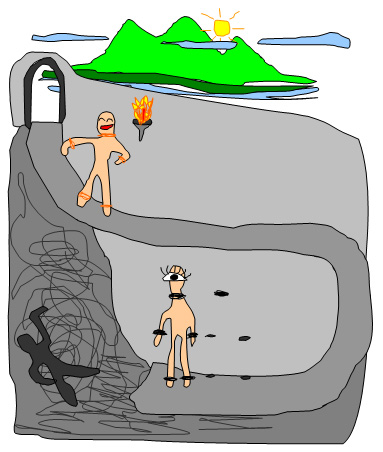 依照柏拉圖「共和國」洞穴理論的說法,囚犯因為困在山穴中、手腳都被綁住,所以眼睛只能注視著前方山谷所折射下的影子,其實他的全部並不止這山穴的影子,更多的美好視野,就在不遠的出口外,如果他安於現狀,即永遠只看得見山穴的影子;如果他有意願嘗試掙脫去找尋「光明的出口」,得到的將會是多采多姿、無法預計的顯著生活差異。
