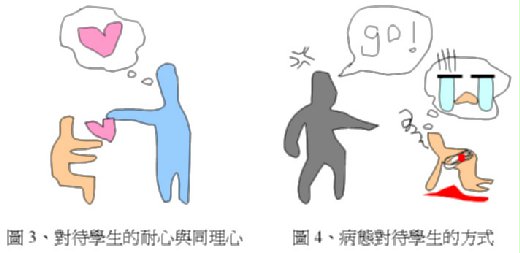 人類真的分成「有用的」、「沒用的」、「好孩子」、「壞孩子」嗎?那壞孩子就真的壞嗎?真的沒用嗎……?這是出自於這群受害的孩子所言,多麼值得省思的一段話,其實它都刻畫在人們的內心深處,是個不應該存在的錯誤觀念;如果真的想成為孩子們「生命中的貴人」,就應該耐心的聽完他們的想法,然後用孩子會的方式指導他們,讓讀書不再這麼制式化、刻板化,大人可以從中學習到不同的詮釋技巧與內心想法,學生也能從新拾起對學習的慾望,何樂而不為呢(如圖3所示)。
