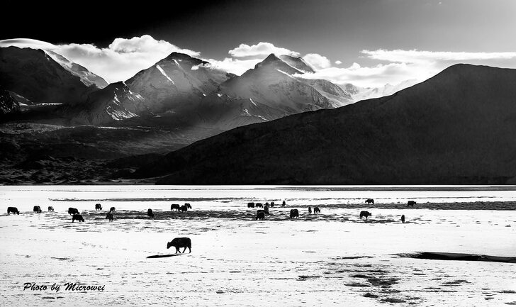 〈犛牛 ‧ 雪地 ‧ 晨光〉