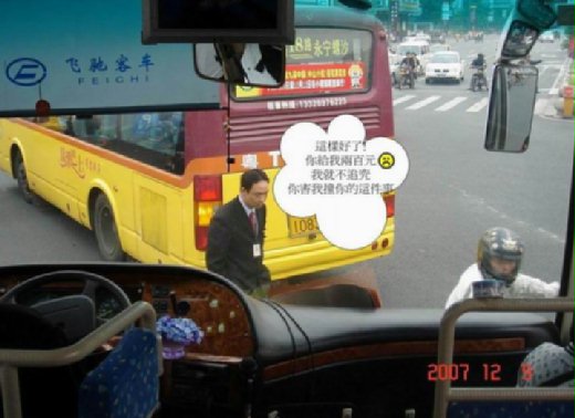 旅途中的巴士與公交車擦撞, 一伙人突然開心的不得了, 因為從來沒有這樣的機會可以罷佔十字路口....