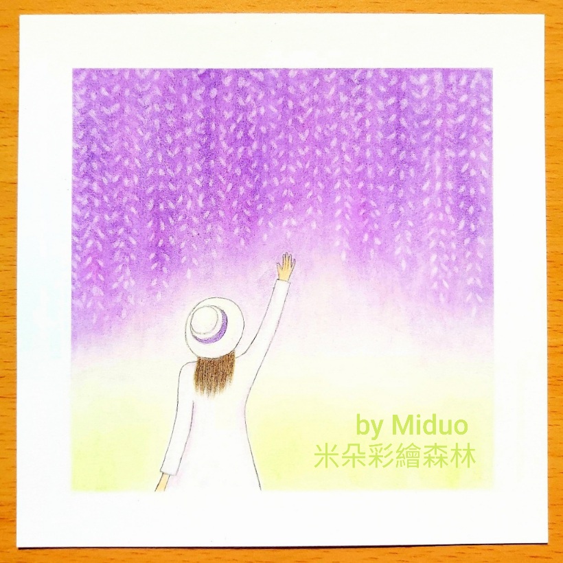 一串串如風鈴般的紫藤花 是我對你的 依依思念 願 緣分再起 與 你在風中重逢 再續前緣 和諧粉彩有多種紫藤花畫法,這次嘗試用紫色粉彩抹上漸層背景,再用橡皮擦擦拭紙型版留白,畫起來挺美的,適合初學者,不...