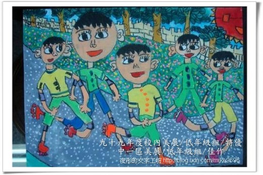 『我的快樂暑假』是學校訂的主題,開學時交了二張作品,老師幫他送交參加校內美展,結果很榮幸的獲得低年級組/特優 。只要是『特優』的作品,學校就會送到縣府參加中一區美展,而讓人開心的是,這張作品又獲得低年級組/佳作。