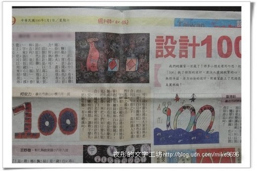 這張作品是小公主參加國語日報慶祝中華民國100年/設計100的徵畫作品,很榮幸的就在100年1月1日登上國語日報。濛濛的作品翻拍自國語日報,因編輯圖畫時,不小心把檔案給刪了(作品完成2010-11-25)
