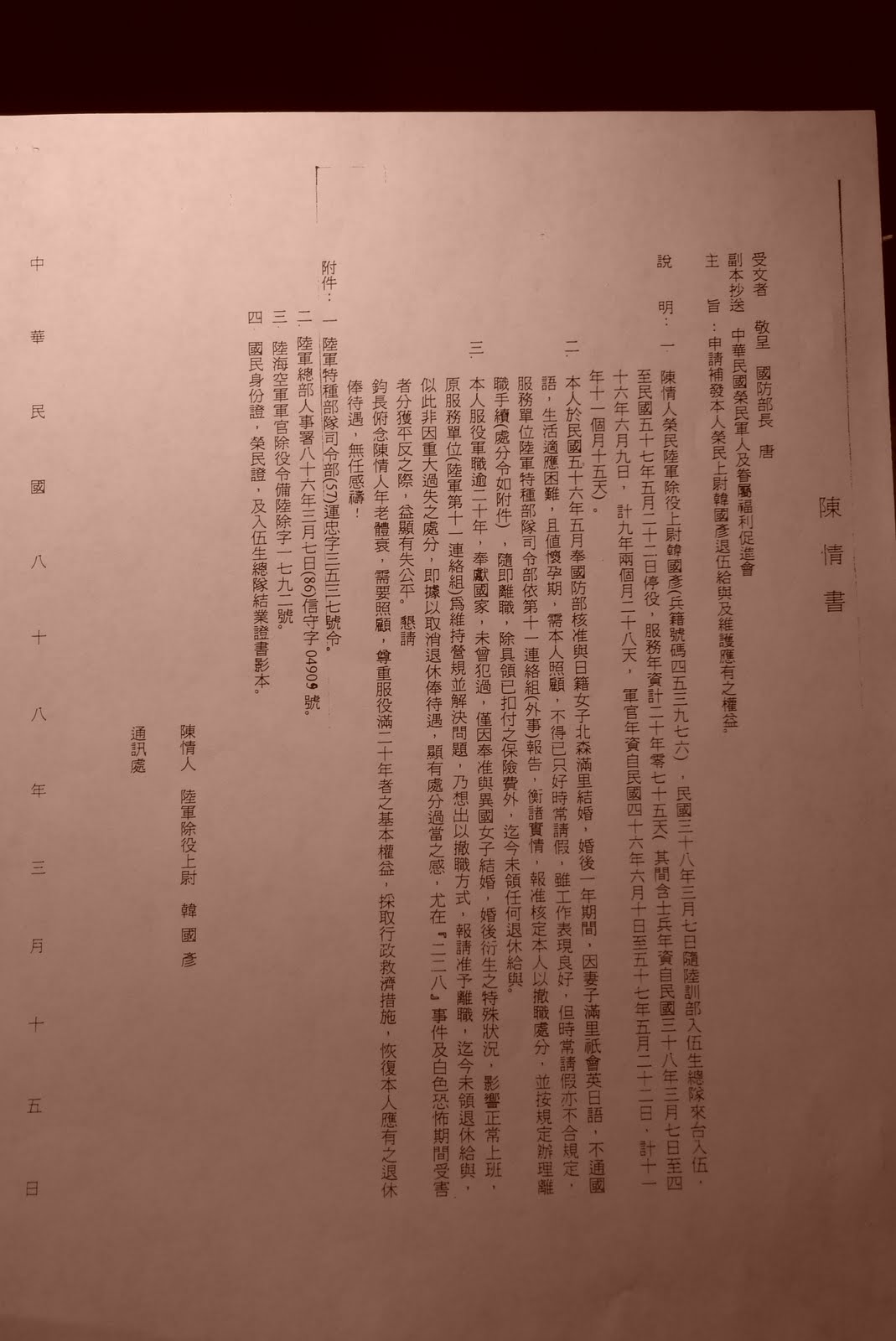 陳肇敏更至今只為自己喊冤。國防部保防系統連江國慶父親四處陳情的舉動,都當作情蒐對象掌握,這種無法無天的惡行,當過其長官、指揮過辦事的陳肇敏能沒有歉意?還說得出口「人命關天」四個字,難怪江媽媽不肯原諒。