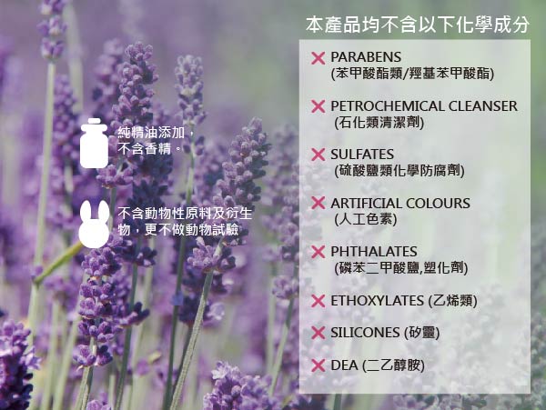 成份:檸檬、迷迭香、絲柏、杜松、天竺葵芳療精油、維生素B5 、蓖麻油萃取液。