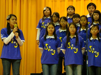 我們演出的歌曲是A light will be there ,這是一首充滿希望的歌曲,班上有學街舞的「鋼琴王子」還「犧牲形象」,以「賣火柴的小女孩」的身分粉墨登場........![]()