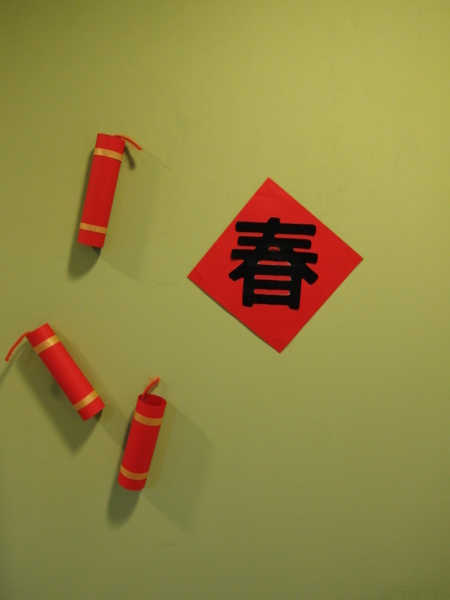 上圖為工作人員們手工製作的鞭炮,同學們喜歡嗎?