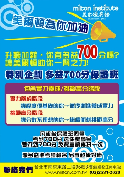 考不到700分,免費重讀再拼一次!