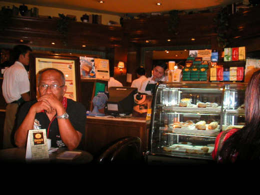 06年和老公跟團旅遊菲律賓,那天下午兩人逛到當地商城,我趁機想找一間知名咖啡館,他顯不耐,不喝咖啡的人更無心挑品牌,只好隨意坐下囉。當時也是想他在台灣忙的沒時間享受咖啡館的悠閒,才有意人在異國時閒閒坐一下,沒想到他還是無興趣,又不好掃我興,兩人在咖啡館內,各自喝著飲料看著時間,等待團員集合時間。