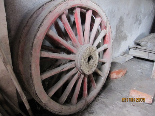 滿屋子灰塵和一些麻袋,幾個生鏽農具...還有就是這個超乎我想像的牛車輪...她斑白的靠在牆邊...很堅強又固執的靠著牆,已經物換星移,科技世代,她不會再出征,但她曾經有過的付出與努力...我在今天~一個不曾參與過她年代的子孫~用影像紀錄紀錄了她...