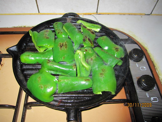 朋友從阿根廷帶回來的鐵盤,可以煎牛排也可以煎雞肉,今天我用來煎青椒。非常好用的鐵盤!