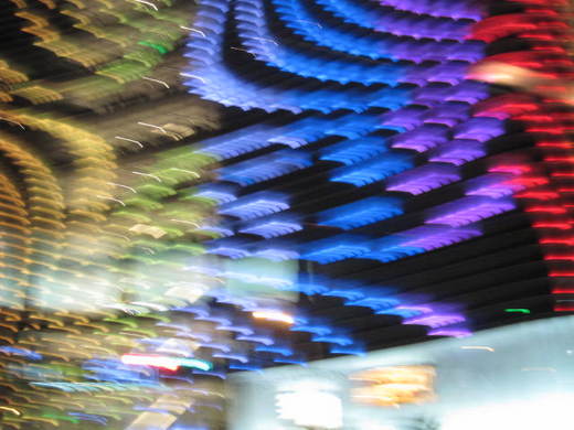幻化燈光五彩的百貨公司一面閃耀的牆,如夢似幻,迷離著旅人的眼...車行人去誰也沒有停留...