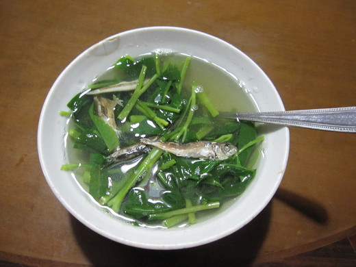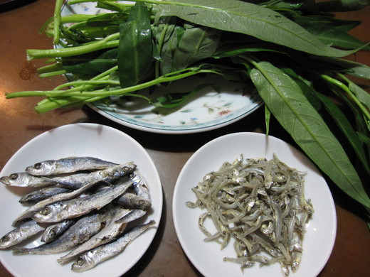 與老公應酬席間聽旁邊一位七十幾歲老先生說起傳統古早味,空心菜煮小魚乾煮湯,是一道從小常喝的湯,但他強調一定要用沙丁魚乾(臭肉魚)來煮才對味,我就沒聽過了。為了好奇的本能,回家後去菜市場賣澎湖乾貨的小攤買到了臭肉魚。圖左邊是臭肉魚,右邊才是丁香,真的煮起來湯的味道不一樣,差別在丁香比較搶味,而臭肉魚淡一些卻更多了清鮮味。