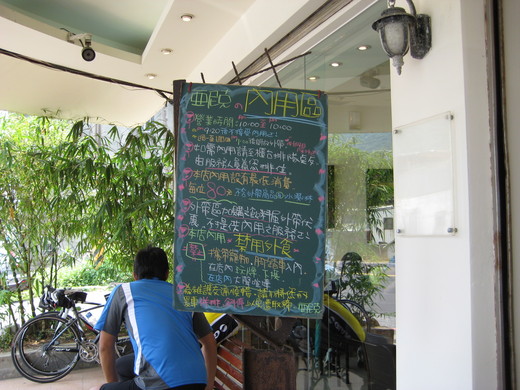 她開車帶著我到北海岸萬里聞名的“亞尼克工廠”喝早茶,沒想到咖啡館裡高朋滿座,很多的單車族都把單車停在門口,進來咖啡館補充水分和上洗手間。蛋糕的式樣很多,居然還有法式的鹹派,但是我沒有嚐試,下次了!我點了一個檸檬起司蛋糕和咖啡,倒是我朋友點的茶非常好喝。蛋糕的盒子上印著法文:希望吃了這蛋糕的人都有著快樂的時光。但願我朋友吃了這蛋糕真的有好心情。我看著甜點的心情是一掃心中的陰霾,至少我是如此,感覺到短暫滿足的幸福!