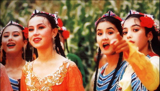我順便圍觀 看了一場免費的維吾爾族歌舞表演 女孩就像這張照片