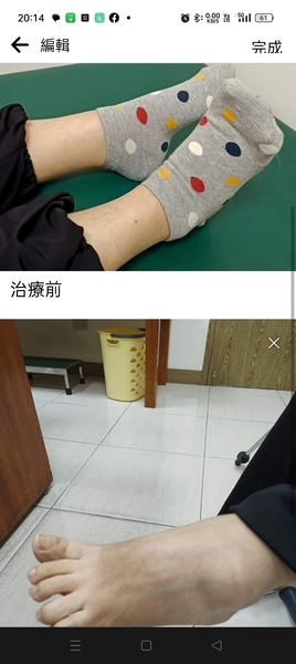 垂足治療經驗成功的分享: 病人患有糖尿病數十年,控制良好,突然垂足,大拇趾無法往上揚!請他家人盡速到急診室掛號,檢查是否有腦中風或者是腰椎造成神經病變的情況,排除中風的可能性,立即安排復健治療及針極肌...