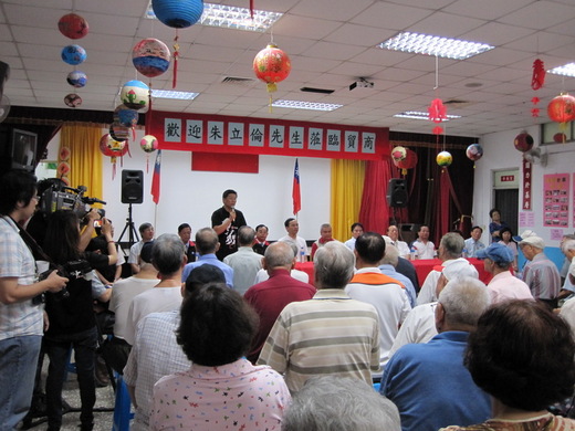 朱立倫密集拜訪多個眷村,獲許多榮民伯伯及婆婆媽媽的歡迎,許多人年齡雖大,但是喊起口號的熱情仍然旺盛,朱立倫不斷強調團結勝選的重要性。