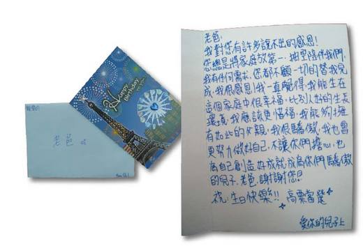 看到議員叔叔的兒子在中秋節大家團聚的夜晚同時也是議員的生日寫的這張卡片