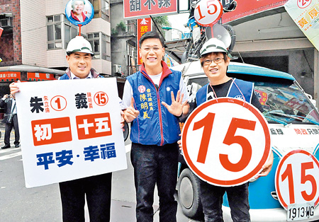 陳明義說,他應是新北市唯一不掛選舉旗幟的市議員候選人。他長期觀察,發現旗幟亂插有礙觀瞻,布幔隨風飛舞也影響行人視線,導致交通風險大增,因此他這次選舉製作人型看板,即便數量較少,但因造型特殊,也能達到很好的宣傳效果,選後則能回收再利用。