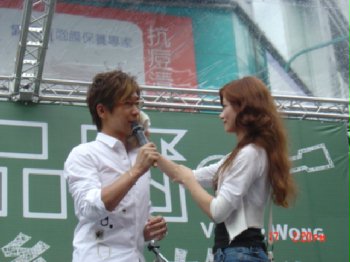 美麗又很讚的女歌迷幫品冠擦汗哩!!!(那天的汗怎麼這麼多呀...連妝都掉哩!)