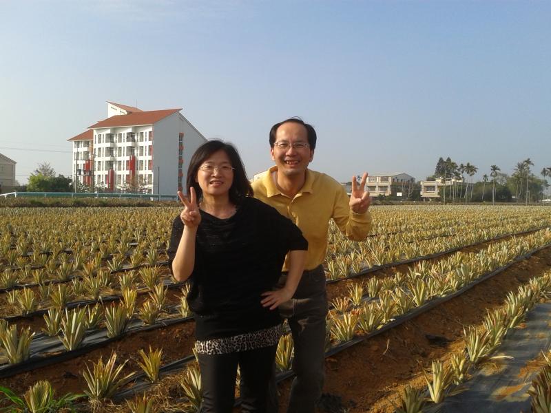 工廠外一大片鳳梨田 可惜還沒長出來 只看到葉子(?)