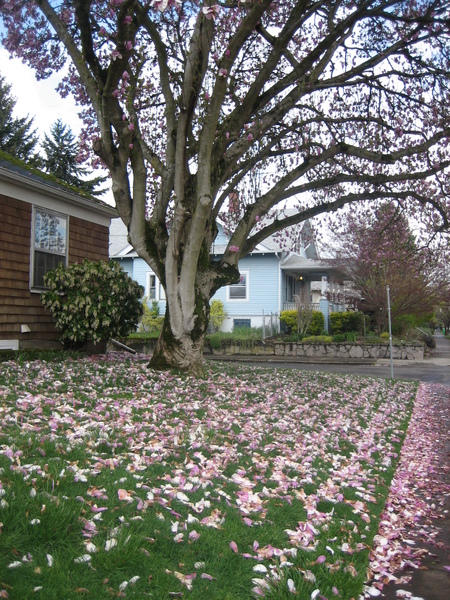 春天一開始開的黃水仙、櫻花和其他幾種花已經開始慢慢飄落、凋謝,今天跑步時正好看到這樣的景色,陽光灑落在滿草地的花瓣上,感覺真美、真有fu,忍不住就回家拿相機將它記錄下來!