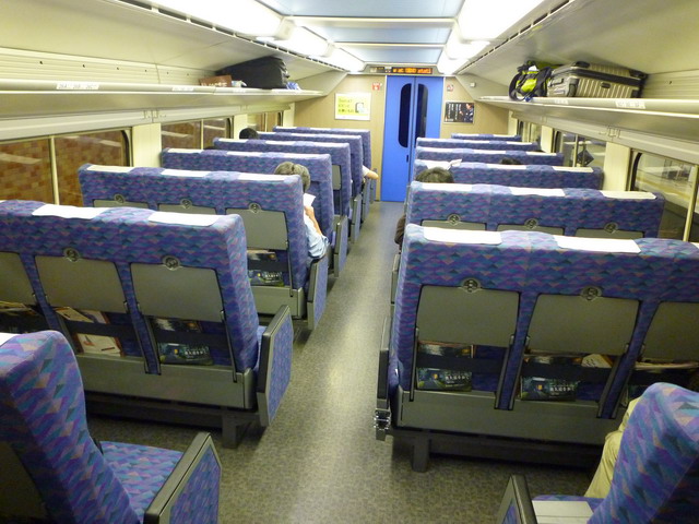 為了增加運輸量,自由席省略掉座位中間的扶手,這樣可以